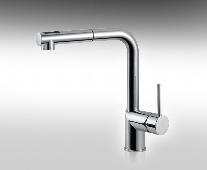 ברז מטבח פרח, פיה אופקית מסתובבת, מזלף ארוך נשלף, שני מצבי זרימה.