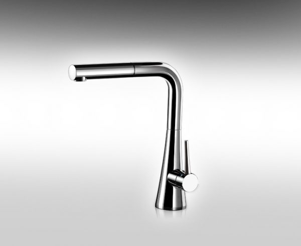 ברז מטבח פרח דגם קוני פיה אופקית מסתובבת, מזלף ארוך נשלף מצב זרימה אחד.